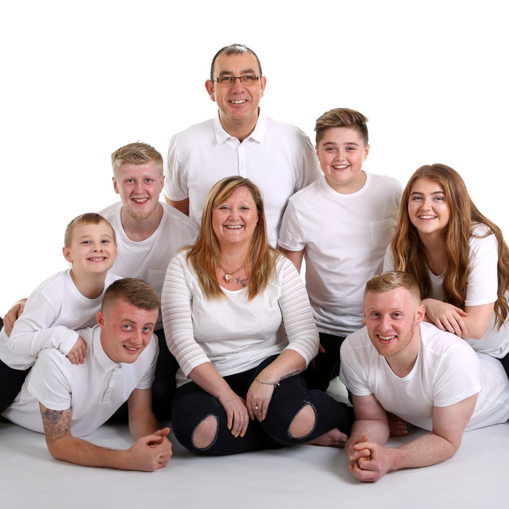 We have a large well equipped portrait studio were we can take family portraits of up to 15 people with a choice of backdrops. We do lot’s of family portraits and capture a variety of poses for you to choose from. The style can be formal or relaxed, the latter being the most popular and makes the session more fun and enjoyable. We will gladly take an assortment of groups on a session, i.e. everyone together, just the kids, the dog, mum & dad together etc… A mini session last upto 30 minutes and the cost is £20, if you need longer for lots of groups and maybe a change of outfits we do an hour session and this cost £30. Once the portraits are taken we need time to edit them and get them ready for your viewing which is usually a few days later. This is were you can look at all the photos and decide what you would like. As well as prints we do framing, canvas, acrylics, box frames, albums, folios & USB’s. Prices start from just £25 for prints, if there are several you like then a package would be the best option with discounted prices. Let us know what you are wanting and we can give you a price on any product that we offer.